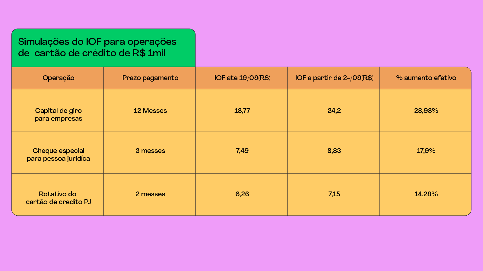 Abaixo, podemos ver na prática como o aumento atinge as principais modalidades de crédito para empresas: