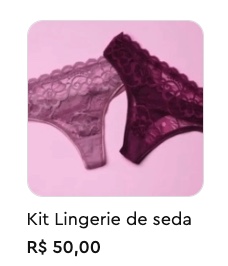 Perceba que ambos vendem o mesmo produto, possuem o mesmo preço e a mesma imagem. Mas o segundo anúncio agrega mais valor com o uso do termo "kit" (que soa mais organizado do que apenas os itens soltos) e deixa os benefícios buscados pelo público alvo mais evidentes (a seda, o uso do termo lingerie).