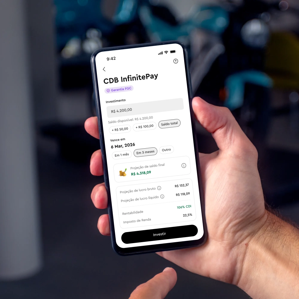 Invista direto pelo app da InfinitePay: você escolhe o valor e o prazo