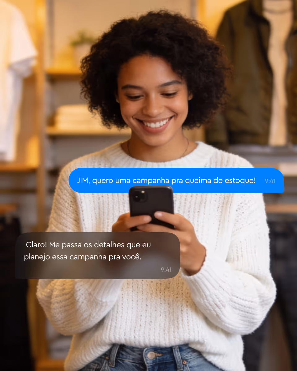 Sim. O JIM analisa suas vendas, entende o perfil do seu negócio e cria campanhas de marketing completas. Ele sugere ideias, escreve textos e orienta ações pensadas para atrair clientes e vender mais, sem que você precise começar do zero ou usar ferramentas externas.