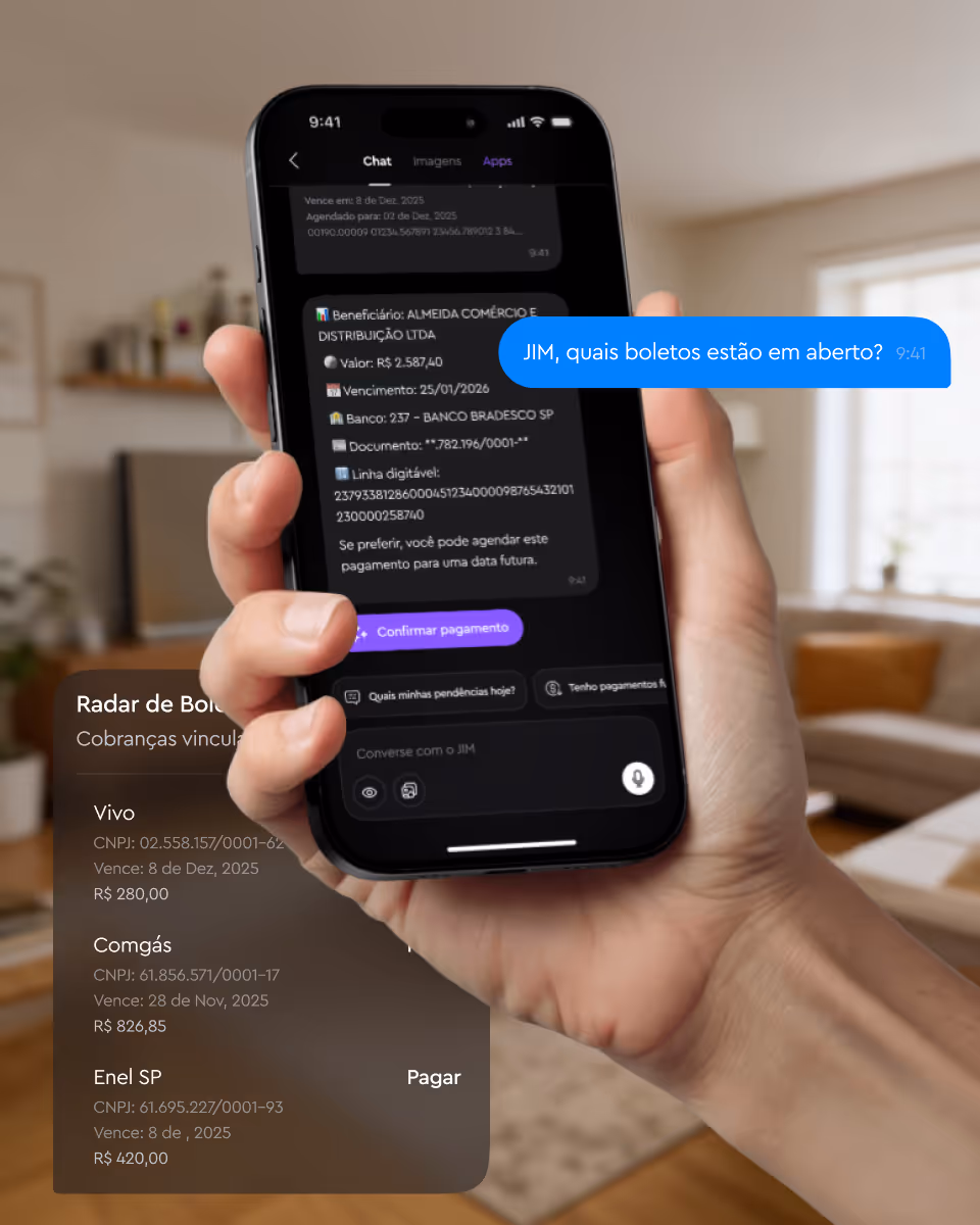 É simples. Basta abrir sua conta grátis na InfinitePay. Em poucos minutos, você já pode acessar o app e começar a usar o JIM imediatamente.