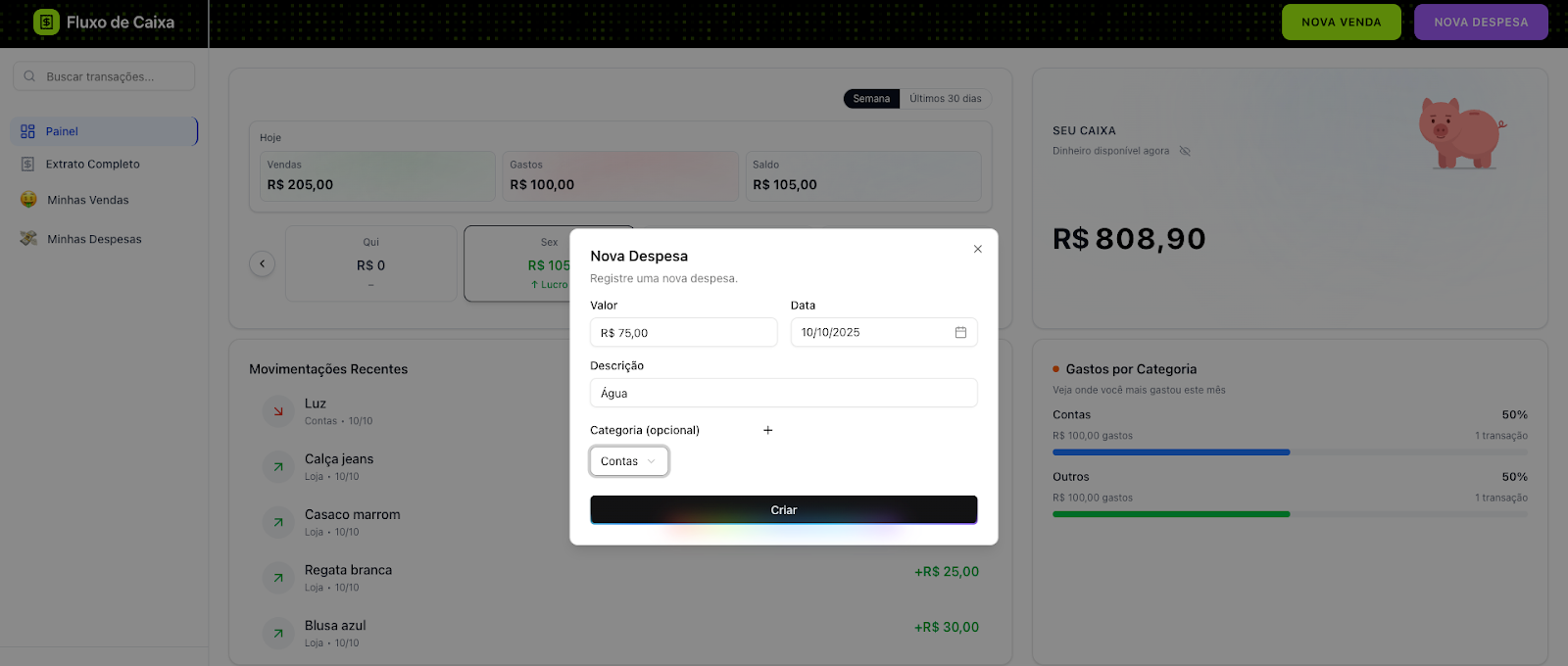 - Registre uma nova despesa