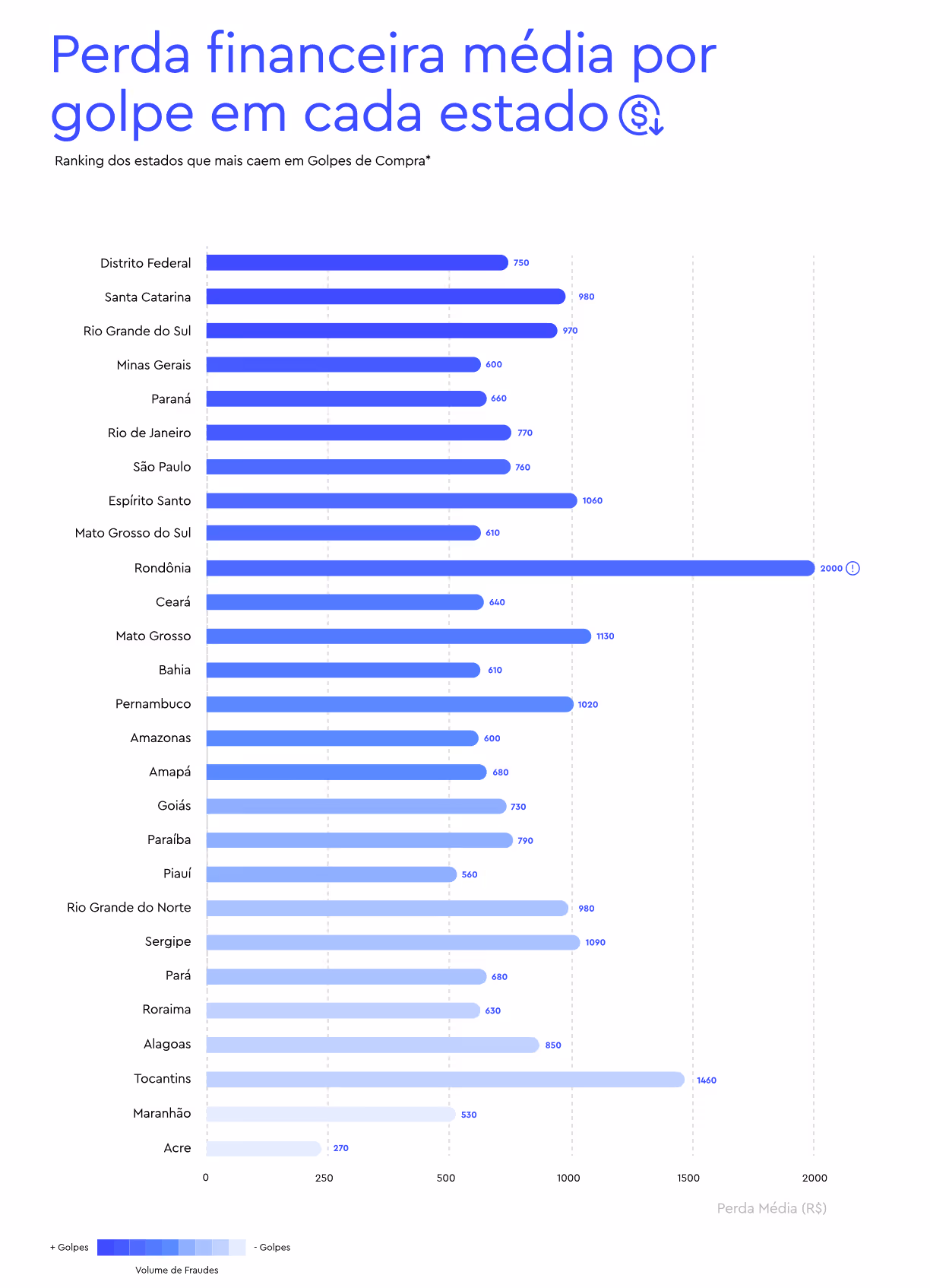 São Paulo, 10 de julho de 2025 – O Distrito Federal lidera o ranking nacional de fraudes em compras digitais, com a maior proporção de vítimas em relação ao volume de transações financeiras, seguido por Santa Catarina e Rio Grande do Sul. Entre os estados com maiores perdas financeiras médias por vítima, destacam-se Rondônia (R$ 2.000), Tocantins (R$ 1.460), Mato Grosso (R$ 1.130) e Sergipe (R$ 1.090).