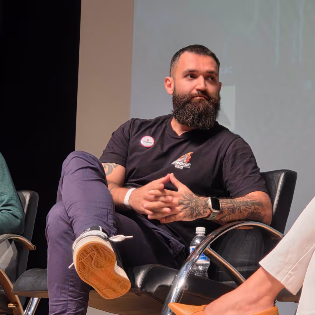 Gabriel Bernal, CXO da CloudWalk, compartilhou sua trajetória como ex-aluno de escola pública, incentivando os jovens a usarem a tecnologia com disciplina e foco. “Quando eu era adolescente, sem acesso a muitos recursos e estudando em escola pública, o que me ajudou a me nivelar com outros jovens foi o computador que minha mãe comprou com muito esforço. Hoje, o que separa a geração de vocês da minha é a inteligência artificial. Usem essa ferramenta com foco e disciplina — vocês podem conquistar o que quiserem.”