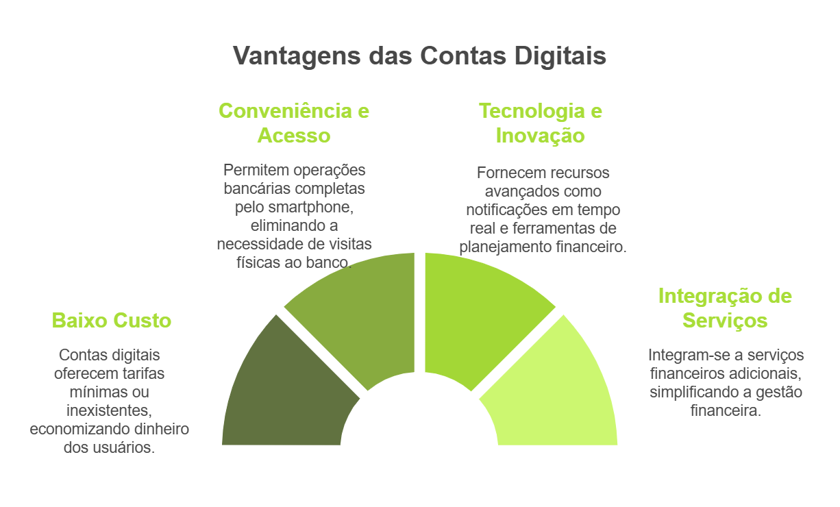 Uma boa conta digital deve oferecer uma combinação de baixos custos, facilidade de acesso e uma gama de serviços que facilitem a gestão diária de suas finanças.